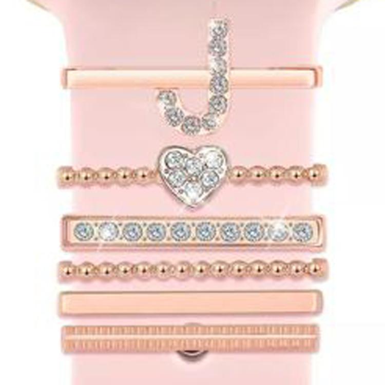 Juego de 6 correas de silicona universales para reloj inteligente, anillos decorativos de metal, talla J (oro rosa)