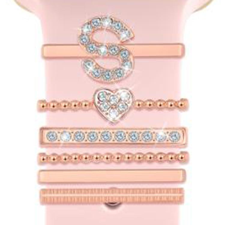 Juego de 6 correas de silicona universales para reloj inteligente, anillos decorativos de metal, talla S (oro rosa)