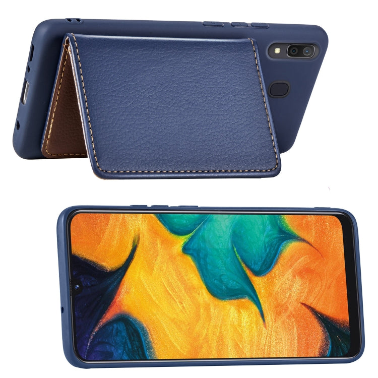 Estuche de Teléfono + Soporte de Billetera Litchi Pattern Galaxy A30 (Azul)