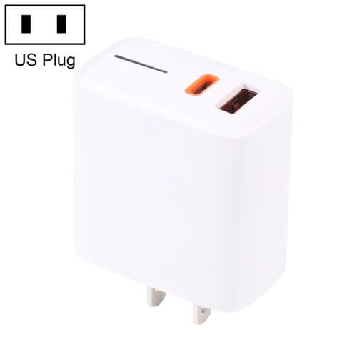 Cargador rápido USB Lz-1130 PD 20W Type-C y QC 3.0 con enchufe US (Blanco)
