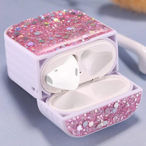 Funda Protectora para AirPods 1/2 Glitter Sequins para Auriculares Inalámbricos (Rosa)