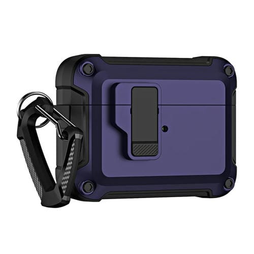 Funda Protectora Para Airpods Pro 2 TPU + PC Con Interruptor De Bloqueo Y Gancho (Azul)
