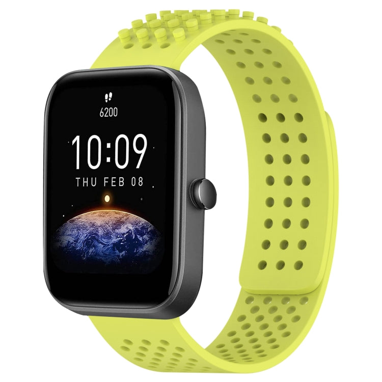 Correa de Reloj de Silicona para Amazfit Bip3 con Puntos 3D Transpirables y Orificios 20mm (Verde Lima)
