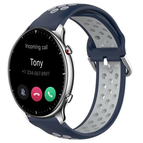 Correa de Reloj Silicona Deportiva Amazfit GTR 2 22mm Transpirable (Azul Medianoche + Gris)