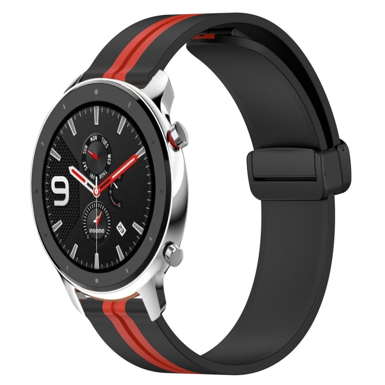 Correa de Reloj para Amazfit GTR 4 22mm Silicona con Cierre Magnético Plegable (Negro + Rojo)
