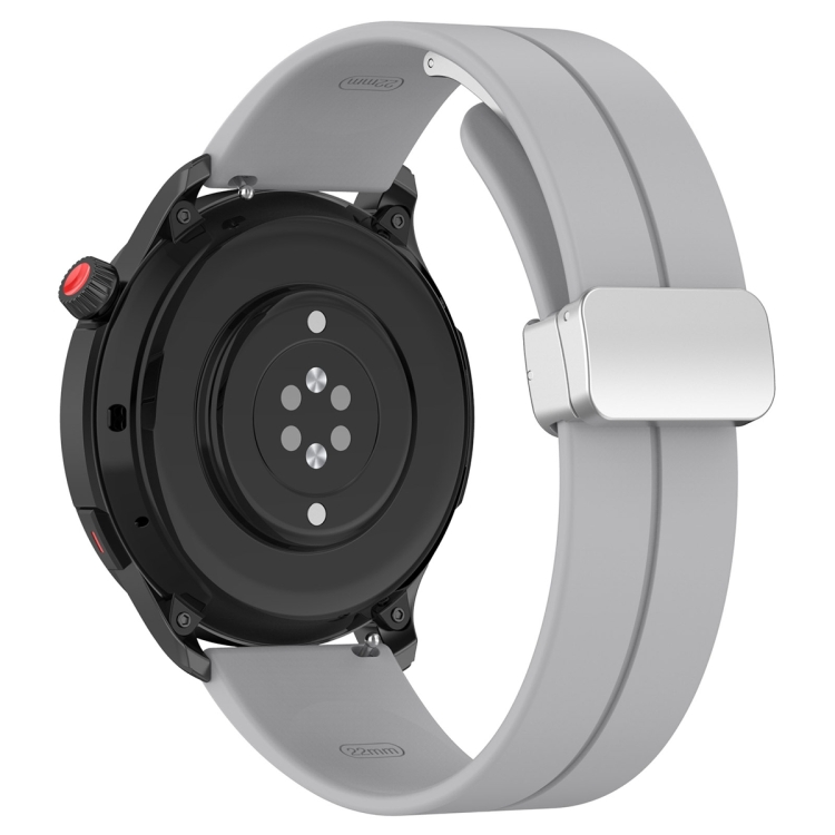 Correa de Reloj Silicona para Amazfit GTR 4 con Cierre Plegable Magnético y Hebilla Plateada (Gris Claro)