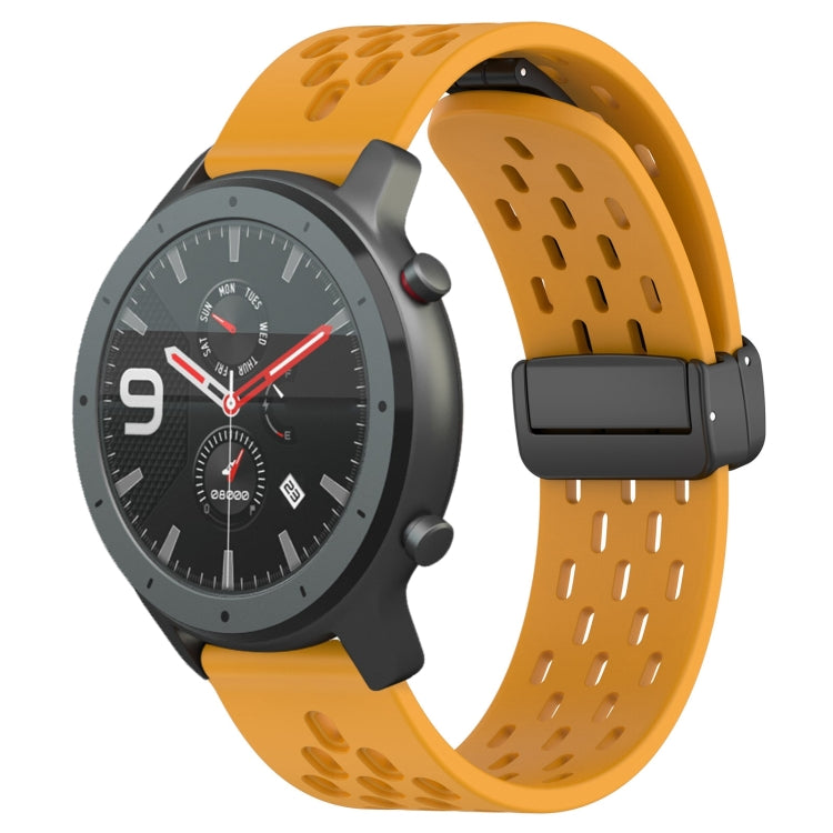 Correa de Reloj Silicona para Amazfit GTR 47mm 22mm con Cierre Magnético Plegable (Amarillo)