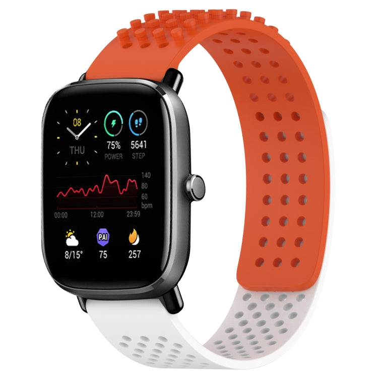 Correa de Silicona para Amazfit GTS 2 Mini con Puntos 3D Transpirables y Orificios 20mm (Naranja + Blanco)