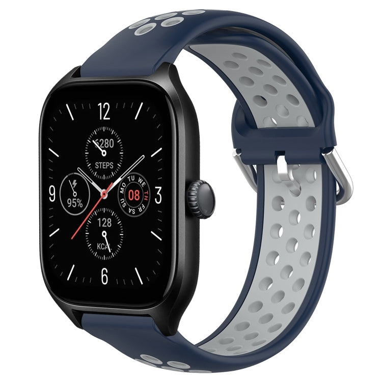 Correa de Reloj de Silicona Deportiva para Amazfit GTS 4 20mm Transpirable Perforada (Azul Medianoche + Gris)