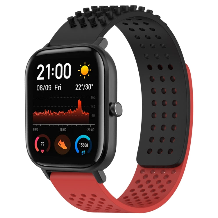 Correa de Reloj de Silicona para Amazfit GTS con Puntos 3D Transpirables y Orificios 20mm (Negro + Rojo)