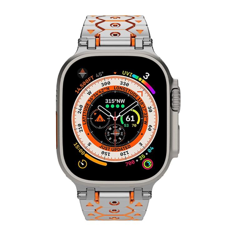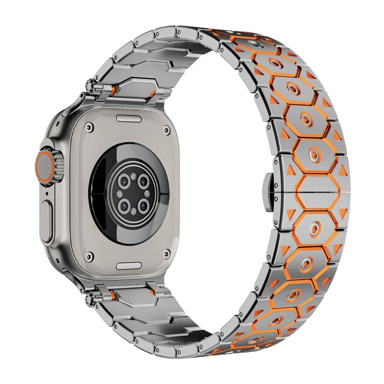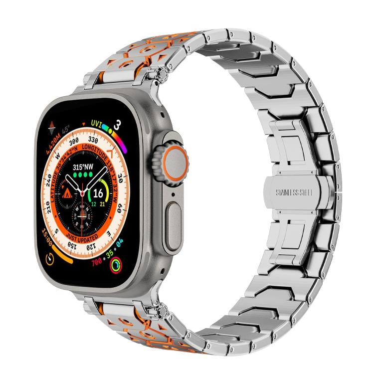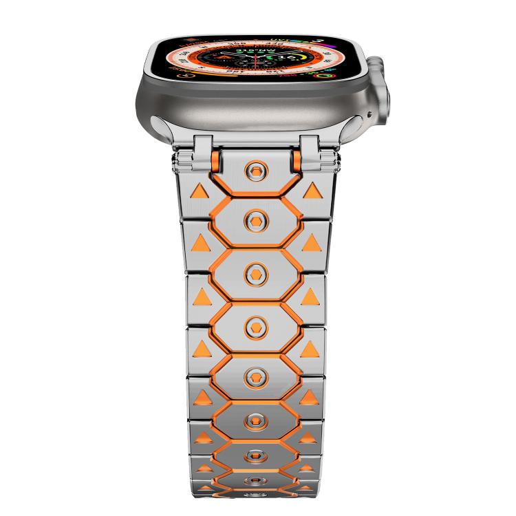 Para Apple Watch de 46 mm, 49 mm, 45 mm y 44 mm, de acero inoxidable octogonal (plata y naranja)