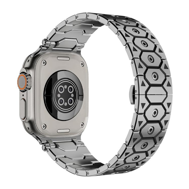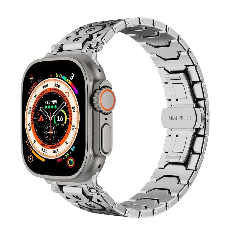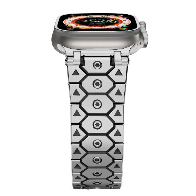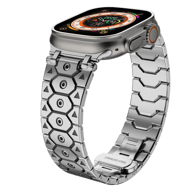 Para Apple Watch de 46 mm, 49 mm, 45 mm y 44 mm, de acero inoxidable octogonal (plata y negro)