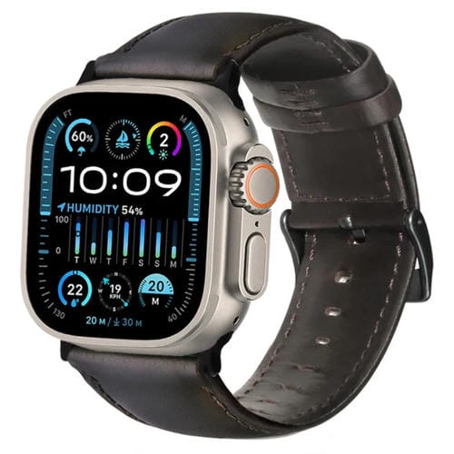Correa de Reloj para Apple Watch Ultra 2 49mm de cuero genuino con cera de aceite (Marrón Oscuro)