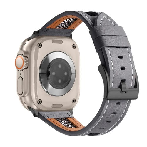Correa de Cuero Genuino para Apple Watch Ultra 2 49mm de Piel de Becerro Malla (Gris)