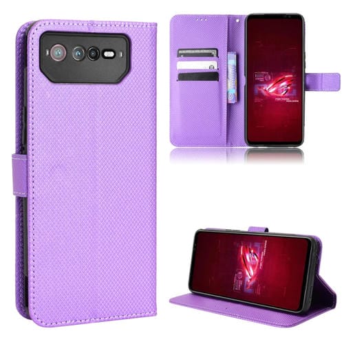 Funda de Cuero para Asus Rog Phone 6/6 Pro con Textura de Diamante (Púrpura)