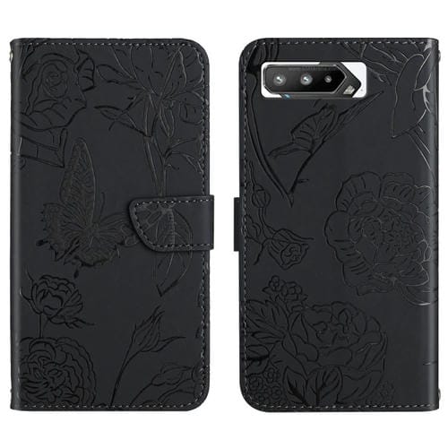 Funda de Cuero En Relieve para Asus Rog Teléfono 5 Zs673Ks Siente la Piel Mariposa Peony (Negro)