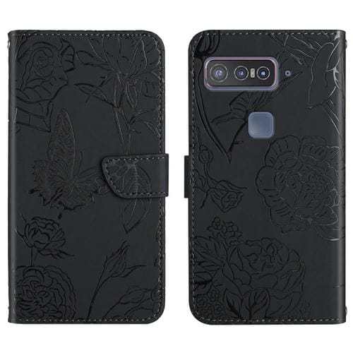 Funda de Cuero en Relieve para Asus Smartphone Snapdragon Insiders Siente la Piel de la Mariposa (Negro)