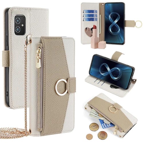 Funda para Asus Zenfone 8 Zs590Ks de Cuero con Textura Litchi Cruzada (Blanco)