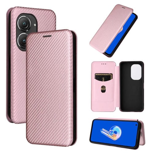Funda de Cuero para Asus Zenfone 9 con Textura de Fibra de Carbono (Rosa)