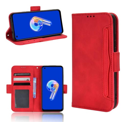 Funda de Cuero para Asus Zenfone 9 con Ranuras para Tarjetas y Textura Becerro (Rojo)