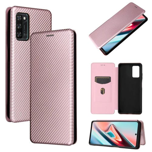 Funda para BlackView A100 Fibra de Carbono Textura Magnética Horizontal Flip TPU + PC Cuero PU con Ranura (Rosa)