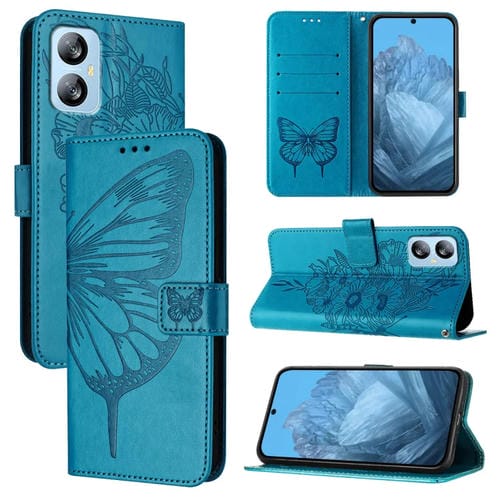 Funda de Cuero para BlackView A52 con Mariposa en Relieve (Azul)