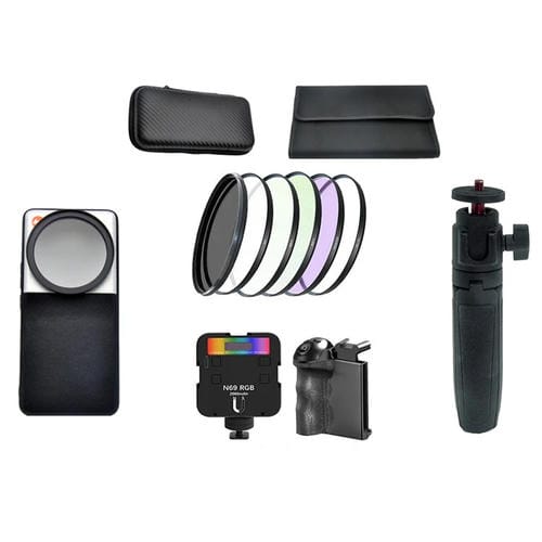 Juego 9 en 1: estuche para teléfono, caja de almacenamiento, CPL, NIGHT, ND2-400, mango de zoom, trípode, luz de relleno, micrófono, cubierta metálica de gran angular