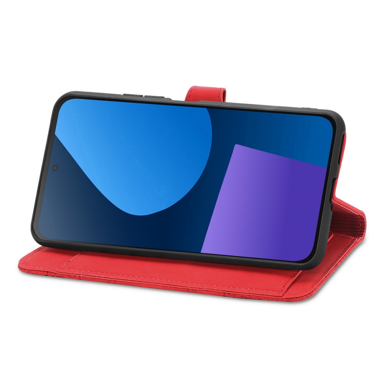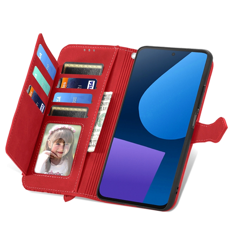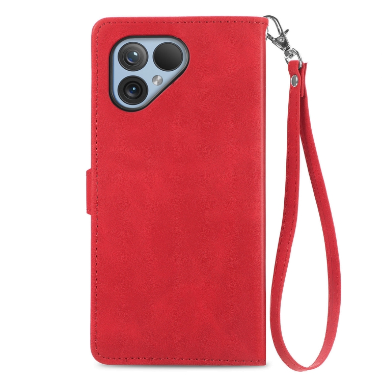 Funda de Cuero para Fairphone 5 con Cremallera y Flores en Relieve (Rojo)