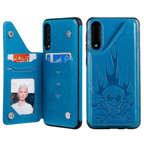 Estuche Protector para Galaxy A50 Skull Head a Prueba de Golpes con Soporte y Ranuras para Tarjetas (Azul)