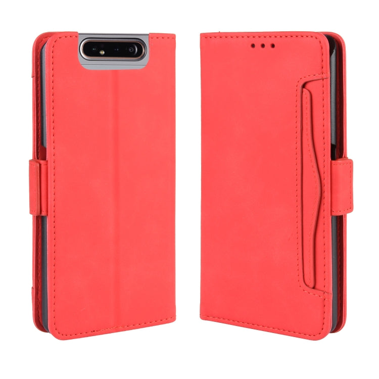Estuche para Galaxy A80 A90 Cuero Diseño Pantorrilla Estilo Billetera con Ranura para Tarjeta (Rojo)
