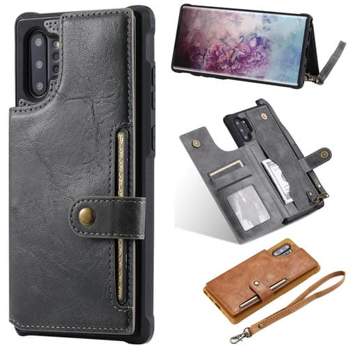 Estuche Protector para Galaxy Note 10 Plus con Cremallera Hebilla Soporte Ranuras para Tarjetas Billetera Cordón y Marco de Fotos (Gris)