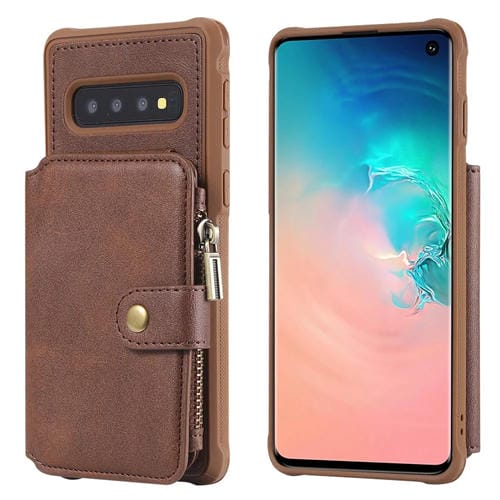 Estuche Protector para Galaxy S10 con Cremallera Ranuras para Tarjetas Soporte y Función de Billetera (Café)