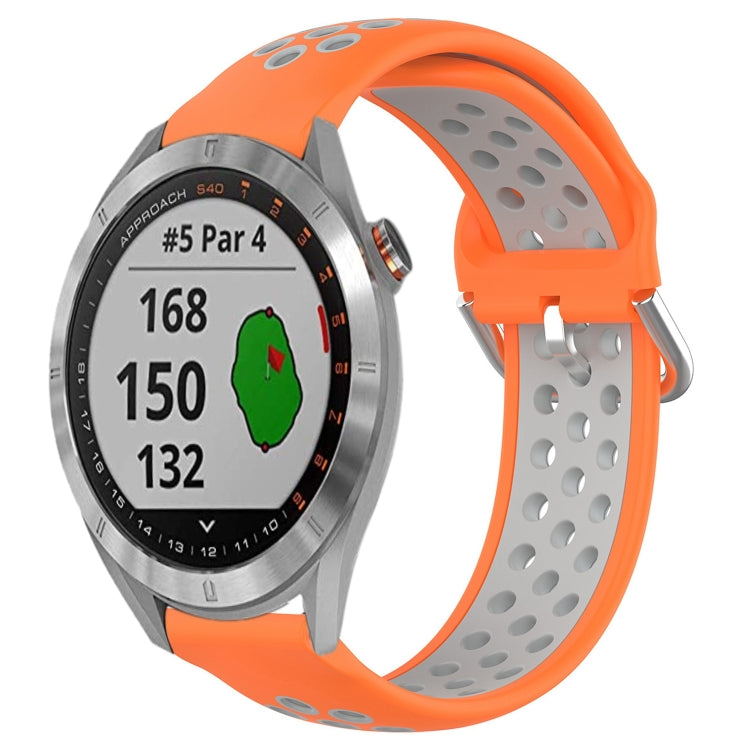 Banda de Reloj de Silicona Deportiva para Garmin Approach S40 20mm Transpirable Perforada (Naranja + Gris)