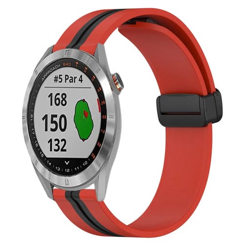 Correa de Reloj para Garmin Approach S40 de Silicona con Cierre Magnético Plegable 20mm (Rojo + Negro)