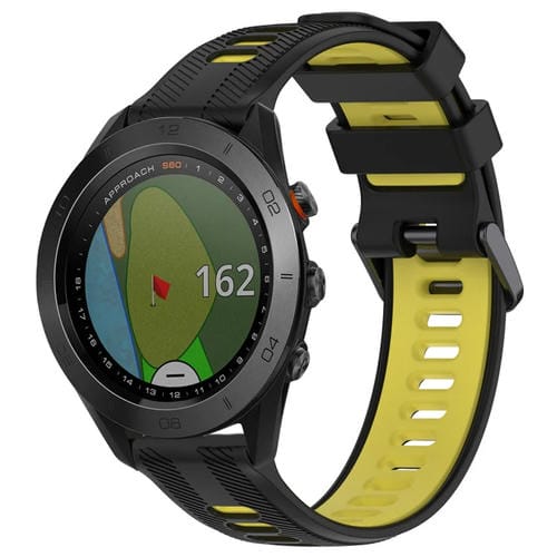 Banda de Reloj de Silicona para Garmin Approach S60 Sports (Negro + Amarillo)