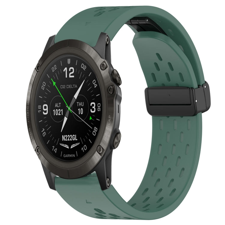 Correa de Reloj de Silicona para Garmin D2 Delta Px con Orificio y Hebilla Plegable de 26mm (Verde Oscuro)