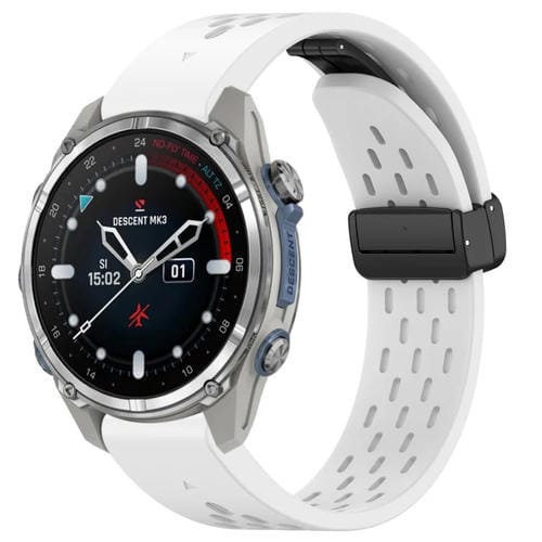Correa de Silicona para Garmin Descent Mk3 43mm 20mm con Hebilla Plegable Magnética (Blanco)