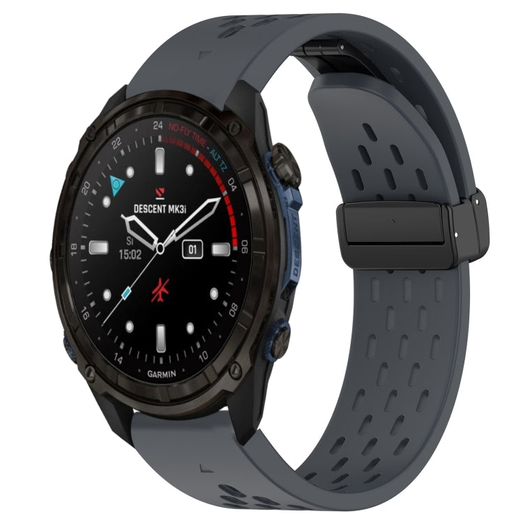 Correa de Reloj de Silicona para Garmin Descent Mk3I 51mm 26mm con Orificio y Hebilla Plegable (Gris Oscuro)