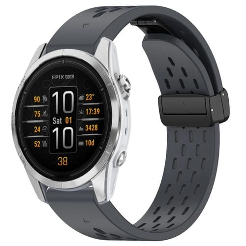 Correa de Silicona para Garmin Epix Pro 42mm 20mm con Hebilla Plegable Magnética (Gris Oscuro)