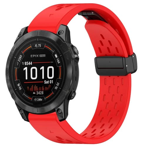 Correa de Silicona para Garmin Epix Pro 47mm 22mm con Hebilla Plegable Magnética (Rojo)