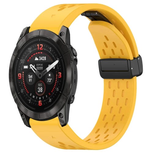 Correa de Reloj para Garmin Epix Pro de Silicona con Hebilla Plegable Magnética y Orificios 51mm (Amarillo)