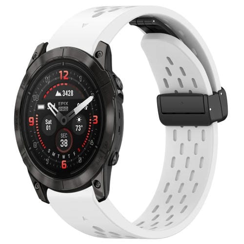 Correa de Silicona para Garmin Epix Pro con Hebilla Plegable Magnética y Orificios de 51mm (Blanco)