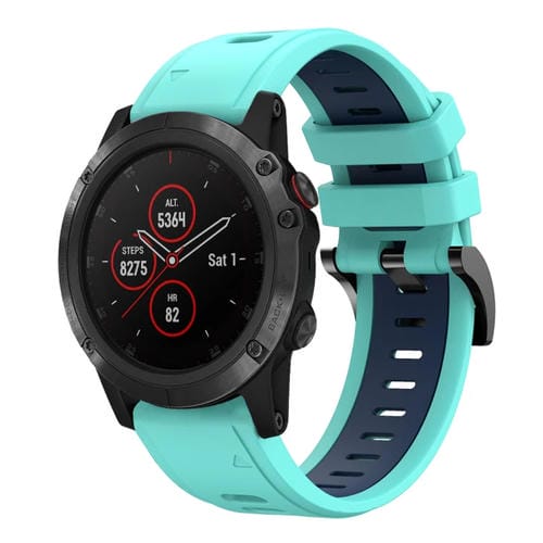 Banda de Reloj silicona deportiva Garmin Fenix 5 Plus 22mm dos colores (Verde Menta + Azul)