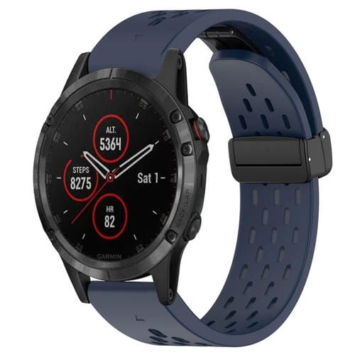 Correa de Reloj Silicona para Garmin Fenix 5 Plus con Orificio y Hebilla Plegable 22mm (Azul Medianoche)