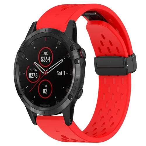 Correa de Silicona para Garmin Fenix 5 Plus con Orificio y Hebilla Plegable de 22mm (Rojo)