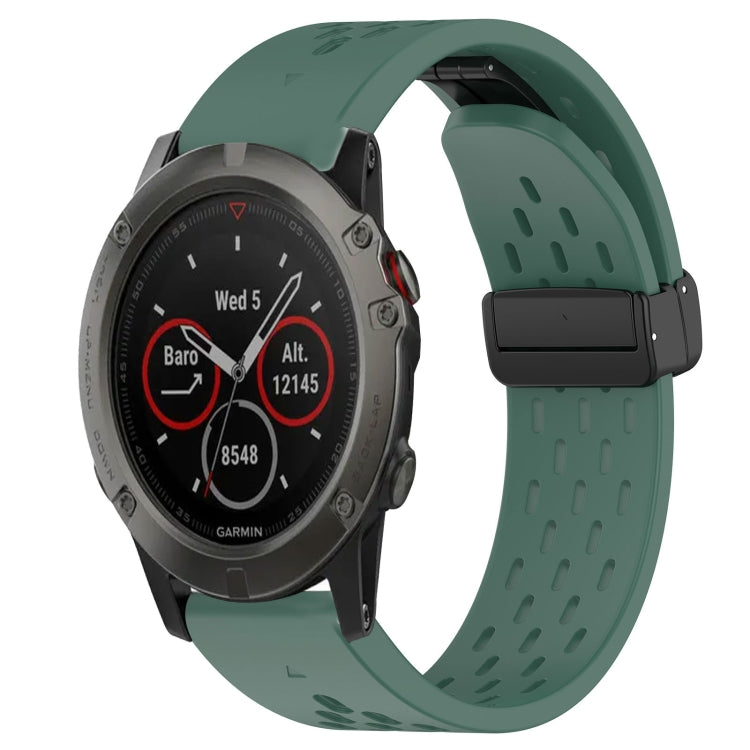 Correa de Reloj Garmin Fenix 5X Sapphire 26mm Silicona con Orificio para Hebilla Plegable (Verde Oscuro)