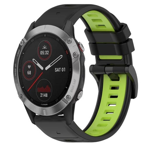 Correa silicona 22mm para Garmin Fenix 6 GPS sports dos colores (Negro + Verde Lima)