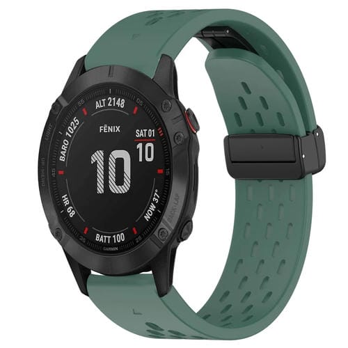 Correa de Silicona para Garmin Fenix 6 Sapphire Gps con Orificio y Hebilla Plegable 22mm (Verde Oscuro)