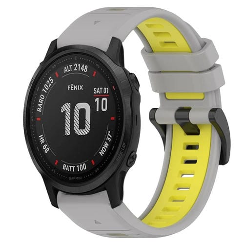 Correa de Silicona 20mm para Garmin Fenix 6S Pro Sports Bicolor (Gris + Amarillo)