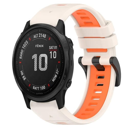 Correa para Garmin Fenix 6S Pro 20mm Silicona Deportiva Bicolor (Starlight + Orange)